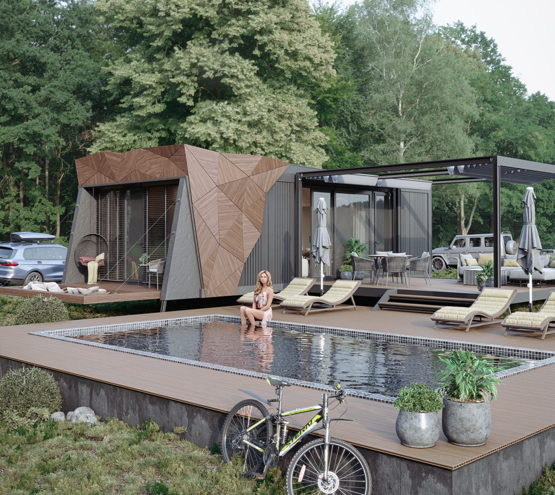 Mit seinem klaren Design, natürlichen Materialien und der Kombination aus Innen- und Außenraum schafft ESCAPE eine Atmosphäre der Ruhe.